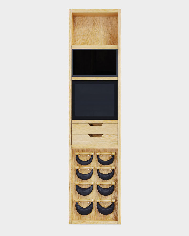 Each NOHRD Wall Compact includes a complete set of 8 hand-stitched leather SwingBells, stored neatly on the wall for a clean, space-saving setup. Designed for functional training, SwingBells help build strength while improving balance and coordination. They also engage the core naturally, supporting better spinal alignment and posture with every workout.